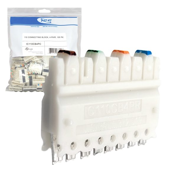 ICC 110 Connecting Block 4 Pair for 110 Wiring Systems, IDC Cross Connect Clips, 100-Pack
