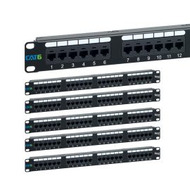 ICC CAT6 Patch Panel, UL Listed & PoE++ Rated Gigabit Applications, Rackmount 24 Port 1U 19-Inch Network Patch Panel with Rear 110 IDC Terminal Blocks for Gigabit Network Switch, Black, Pack of 6